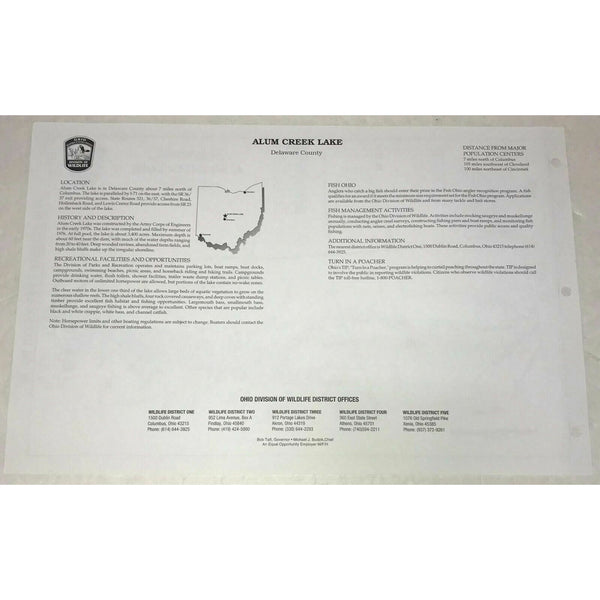 Alum Creek Lake Fishing Map Ohio Vintage 1995 Delaware County