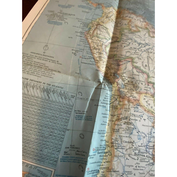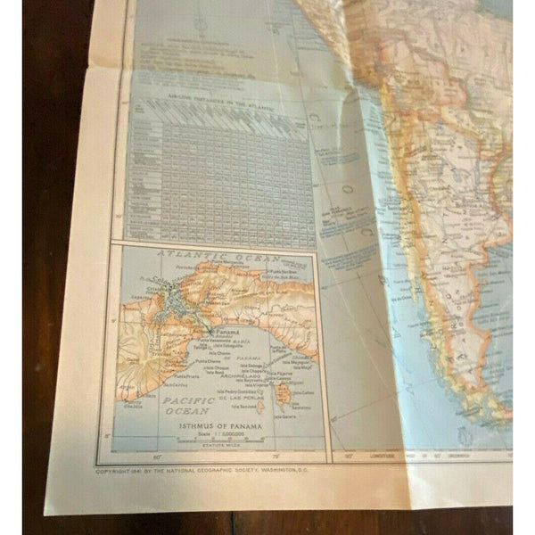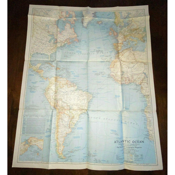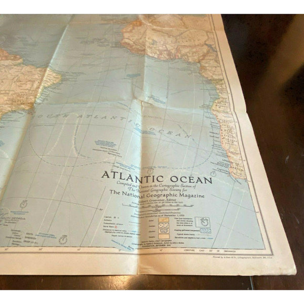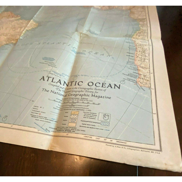 Atlantic Ocean Map Vintage 1941 National Geographic Nautical