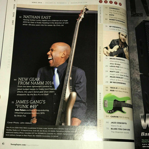 Bass Player Magazine April 2014 Nathan East Daft Punk Tommy Shannon Carvin BP5