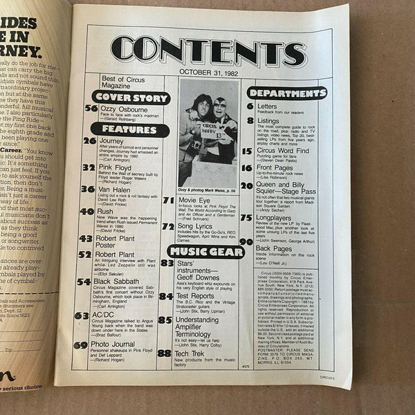 Circus October 31 1982 vintage magazine Ozzy Osbourne AC/DC Journey rock music