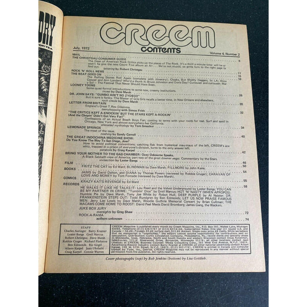 Creem July 1972 vintage magazine Black Sabbath Beach Boys Lou Reed