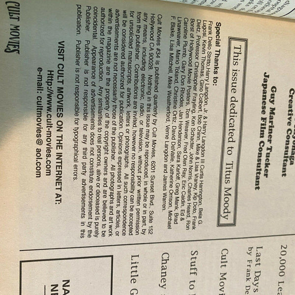 Cult Movies magazine #34 Boris Karloff Frankenstein Bela Lugosi Jules Verne 2001