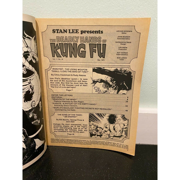 Deadly Hands of Kung Fu Magazine 19 1st White Tiger Iron Fist December 1975