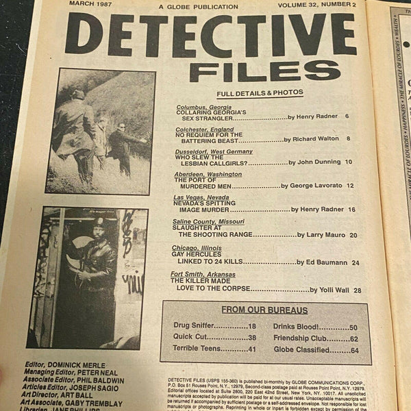 Detective Files March 1987 magazine Real Crime Lesbian Callgirls Gay Hercules