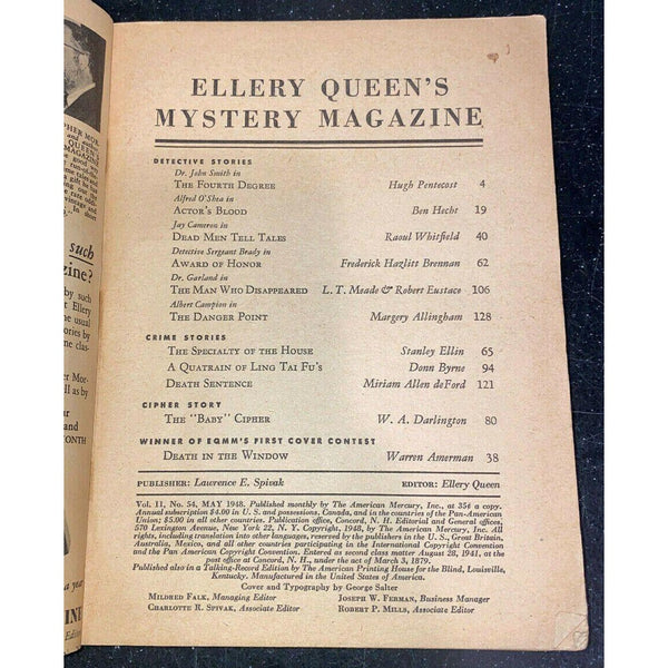 Ellery Queen's Mystery Magazine May 1948 Vol 12 No 54 Margery Allingham