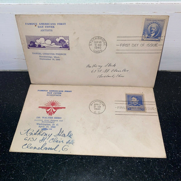 Famous Americans FDC Lot 1940 Cachet Scott 877 887 Walter Reed Daniel French