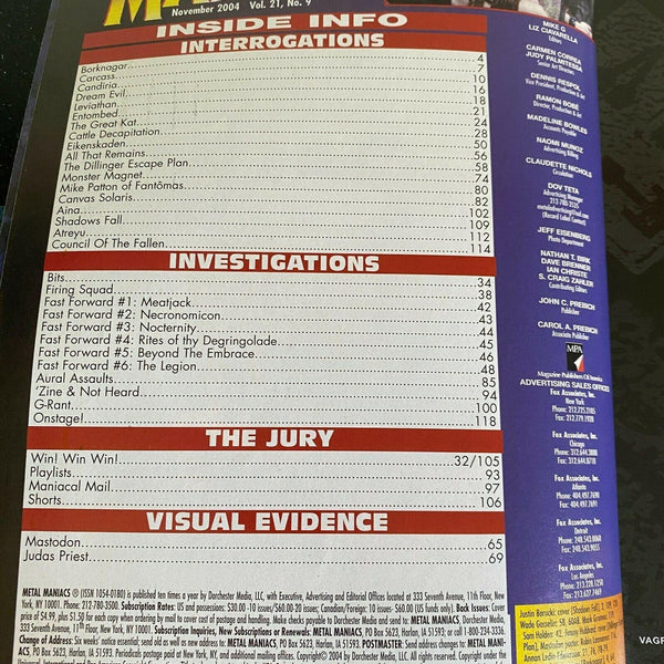 Metal Maniacs November 2004 magazine Heavy Music Dillinger Escape Plan Entombed