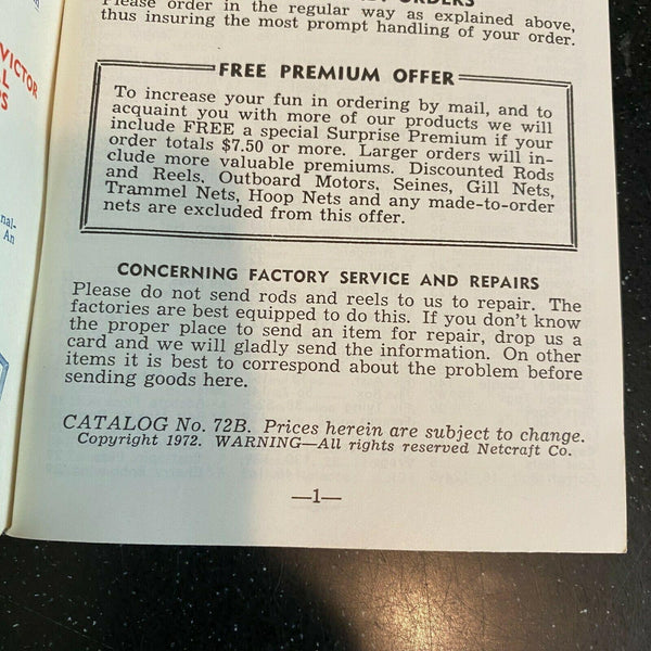 Netcraft Fishing Tackle 1972 Catalog 72B Toledo Ohio Eagle Claw Old Pal Gladding