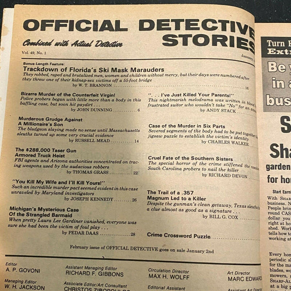 Official Detective January 1979 magazine Real Crime WIP Murder Cover