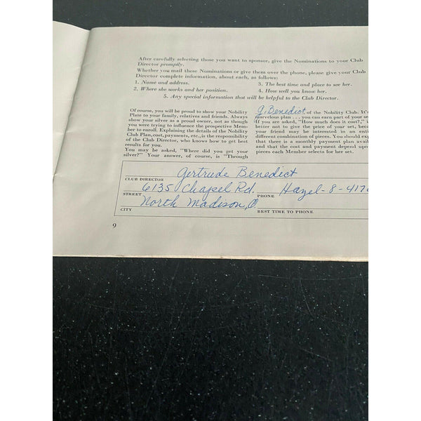 The Nobility Club Member's Book Silver Plate Flatware Brochure 1953 Empire Craft
