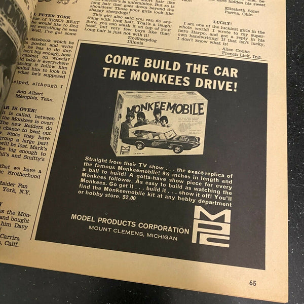 Tiger Beat Magazine October 1967 Monkees Michael Nesmith Bee Gees All Pinups