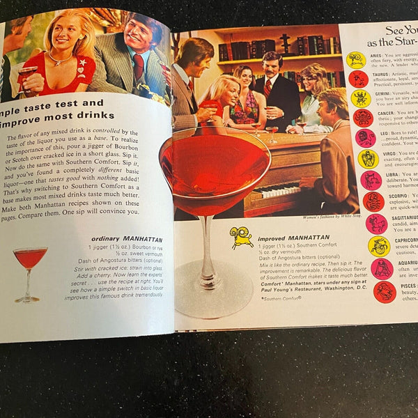 Southern Comfort Mixology Drink Recipe Book Vintage 1972 Happy Hour Astrologynever used - removed from a vintage magazine, where it was an included insert